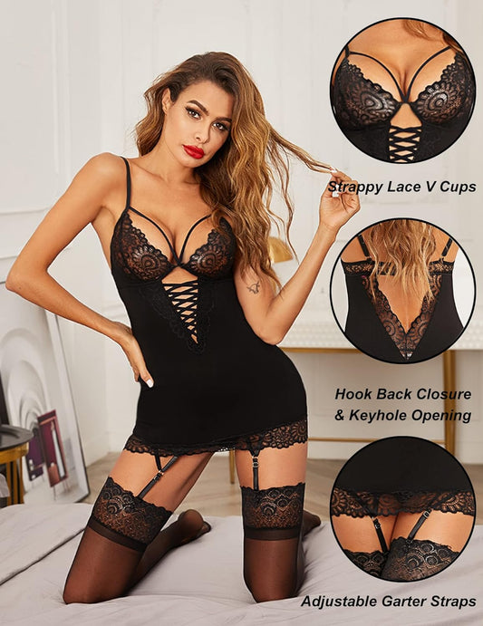 Garter Lingerie for Women Sexy Lace Babydoll Full Slips Chemise Sleepwear S-XXXL